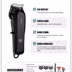 Versatile Combs:Comes with 6 guide combs for diverse styling options, from short to long lengths.